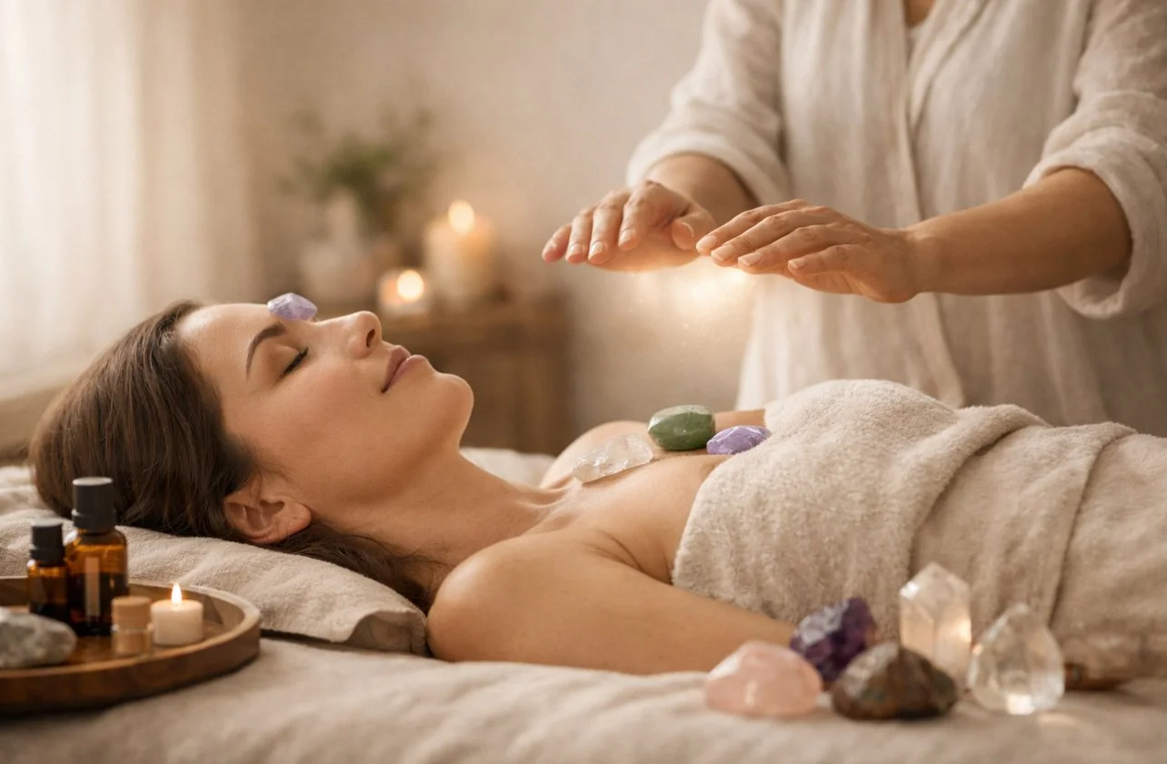 Crystal Healing and Reiki are gentle, energy-based therapies that support deep relaxation, nervous system settling, and a return to balance across mind, body, and emotions. Sessions may incorporate Reiki energy, carefully chosen crystals, and therapeutic essential oils to create a deeply nurturing and grounding experience.